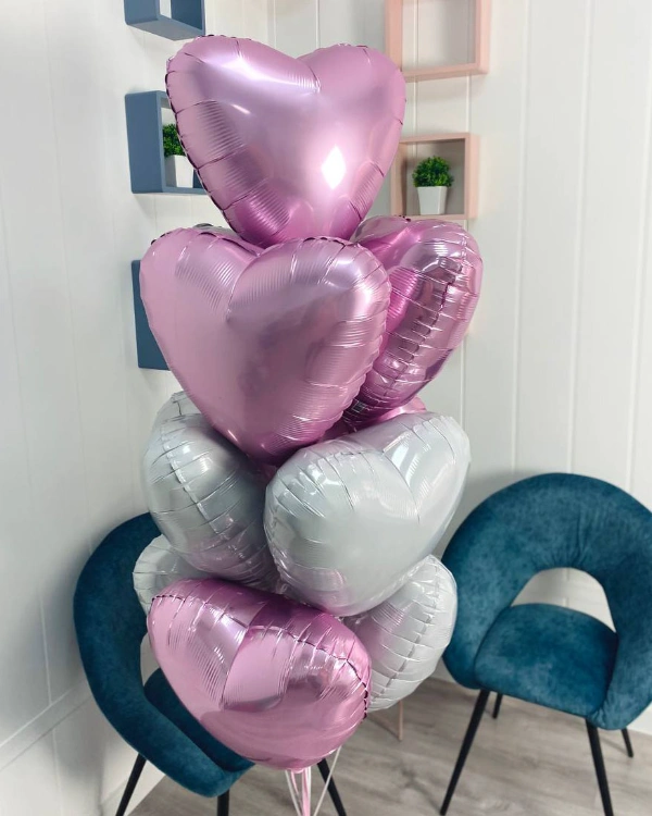 Представьте себе зал, окутанный облаками воздушных шаров, напоминающими нежные лепестки роз или невесомые перышки. Мы создаем роскошные арки, готовые стать достойным обрамлением для вашего «да», символизируя вход в новую, счастливую жизнь. Изящные колонны из шаров, украшенные живыми цветами, встречают гостей, приглашая их в мир любви и торжества. Каскады шаров, струящиеся от потолка, добавляют пространству воздушности и сказочности, а романтические сердца и фигуры олицетворяют единство двух душ.