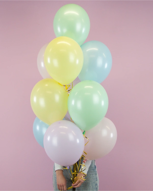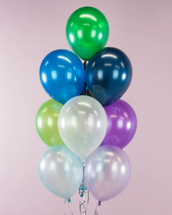 • Классические латексные шары: Все цвета радуги, пастельные оттенки, металлик – выберите идеальный вариант для вашего торжества.