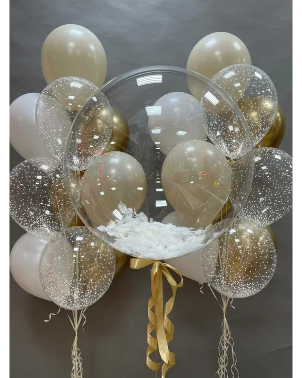 Мы предлагаем шары с перьями, которые станут воплощением вашей мечты. Используя только высококачественные материалы, мы гарантируем, что каждый шар будет безупречен. Перья, деликатно помещенные внутрь, создают завораживающий эффект, а сам шар, наполненный гелием, будет изящно парить, добавляя пространству неповторимого шарма. Это украшение, которое говорит о вашем безупречном вкусе и стремлении к совершенству.